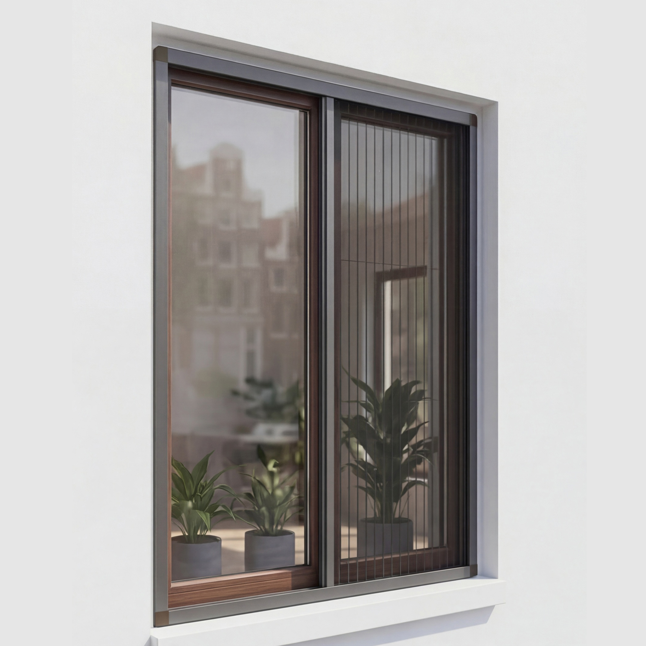 Het geplisseerde gaas schuift soepel open en dicht en blijft op iedere gewenste stand staan. Dankzij het slanke aluminium frame past deze raamhor perfect bij moderne én klassieke kozijnen. Duurzaam, onderhoudsarm en volledig op maat gemaakt.