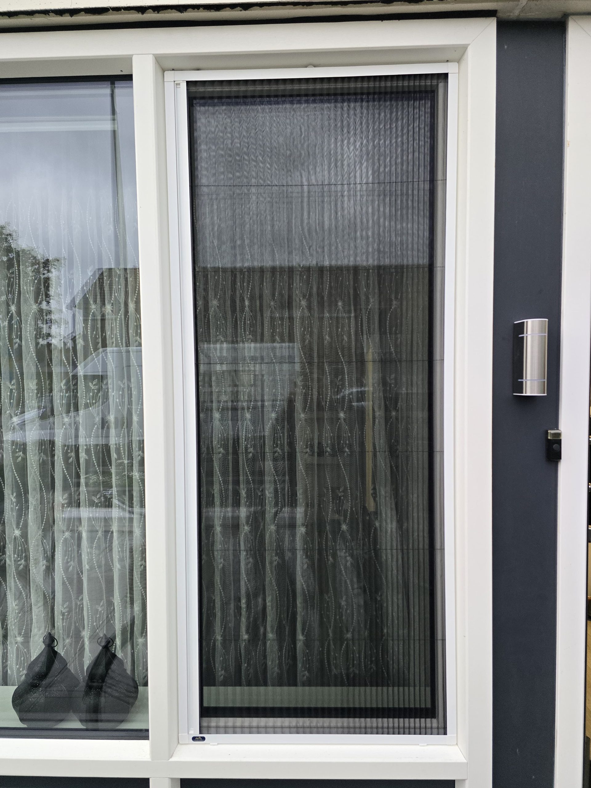 Deze hor wordt eenvoudig in het kozijn geplaatst en is direct klaar voor gebruik. Het geplisseerde gaas schuift soepel open en dicht en blijft op iedere gewenste stand staan. Dankzij het slanke aluminium frame behoud je een strakke en luxe uitstraling, passend bij elk interieur.